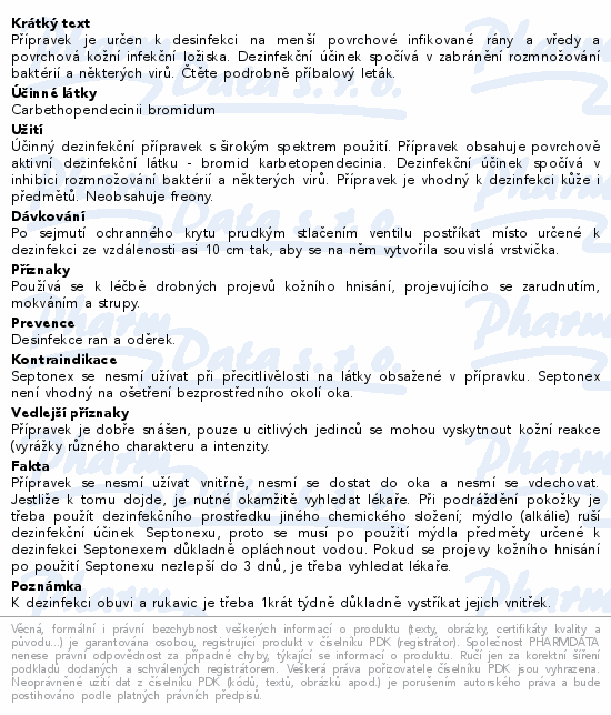 Přípravek je určen k desinfekci na menší povrchové infikované rány a vředy a...