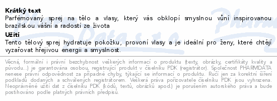 Parfémovaný sprej na tělo a vlasy, který vás obklopí smyslnou vůní inspirovanou brazilskou vášní a radostí ze života