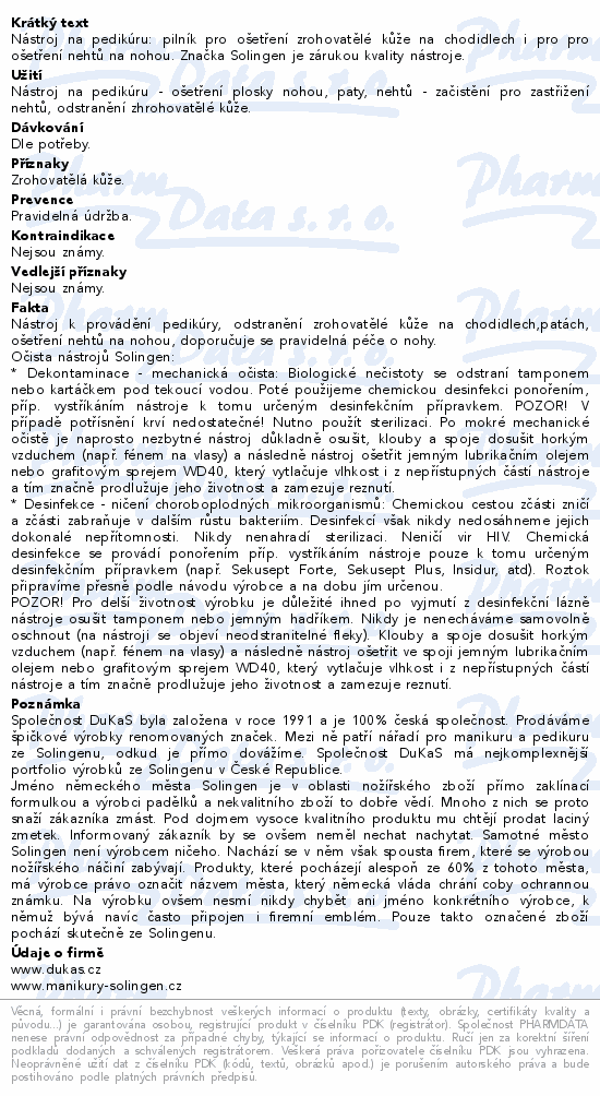 Nástroj na pedikúru: pilník pro ošetření zrohovatělé kůže na chodidlech i pro pro ošetření nehtů na nohou. Značka Solingen je zárukou kvality nástroje.