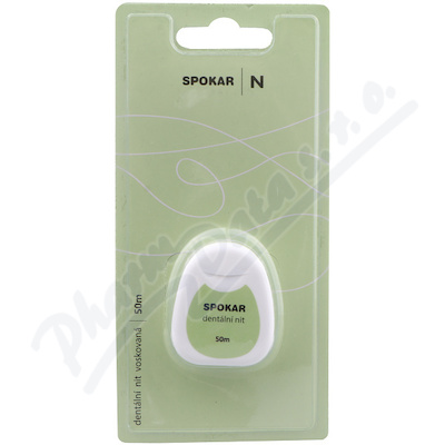 Spokar N dentální voskovaná nit 50 m pro čištění mezizubních prostorů. Zubní nit je pokrytá slabou vrstvou vosku, proto lépe klouže po povrchu zubu a usnadňuje čištění.