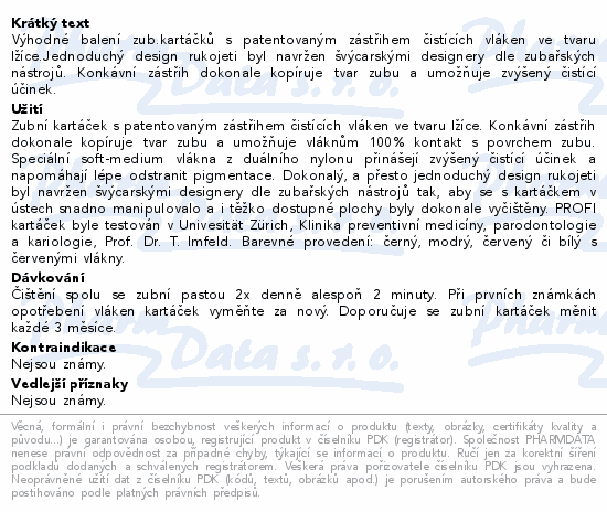 Výhodné balení zub.kartáčků s patentovaným zástřihem čistících vláken ve tvaru lžíce.Jednoduchý design rukojeti byl navržen švýcarskými designery dle zubařských nástrojů. Konkávní zástřih dokonale kopíruje tvar zubu a umožňuje zvýšený čistící účinek.