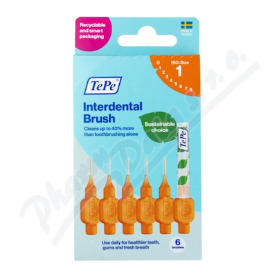 TePe Original mezizubní kartáčky 0, 45 mm, oranžové 6 ks. Drátek je potažený plastem pro maximální ochranu dásní a citlivých zubních krčků. Vysoce odolné vůči zlomení. Plochá rukojeť pro pohodlné a přesné čištění. Baleno v papírové uzavíratelné krabičce.