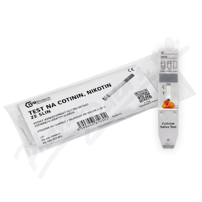 Rychlý jednostupňový kontrolní test pro detekci Cotininu (metabolitu nikotinu) v lidských slinách. Indikace pozitivity cca 1 den po použití v závislosti na množství užité látky, metabolizmu, hmotnosti, pohlaví i věku testované osoby. Výsledek do 10 min.