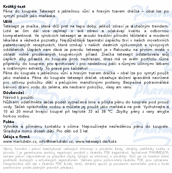 Pěna do koupele Tetesept s jablečnou vůní a hravým tvarem dráčka – obal lze po vymytí použít jako maňáska.