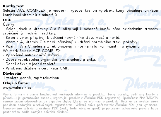Selezin ACE COMPLEX je moderní, vysoce kvalitní výrobek, který obsahuje unikátní kombinaci vitaminů a minerálů.