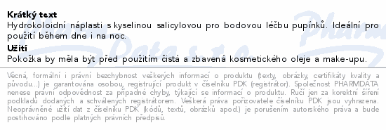 Hydrokoloidní náplasti s kyselinou salicylovou pro bodovou léčbu pupínků. Ideální pro použití během dne i na noc.