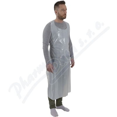 Jednorázová zástěra bílá, vyrobena z PE. Slouží na ochranu oděvu před znečištěním. Zástěra se může používat např. ve zdravotnictví, i v potravinářském průmyslu, může přicházet do styku s potravinami (podle 1935