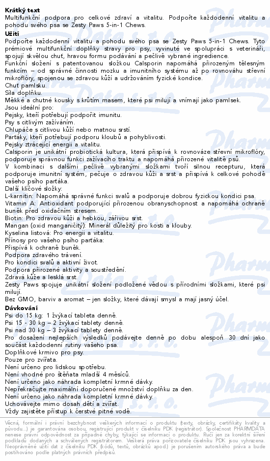 Multifunkční podpora pro celkové zdraví a vitalitu. Podpořte každodenní vitalitu a pohodu svého psa se Zesty Paws 5-in-1 Chews.