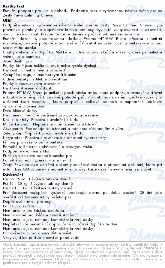 Funkční podpora pro klid a pohodu. Podpořte relax a vyrovnanou náladu svého psa se Zesty Paws Calming Chews.