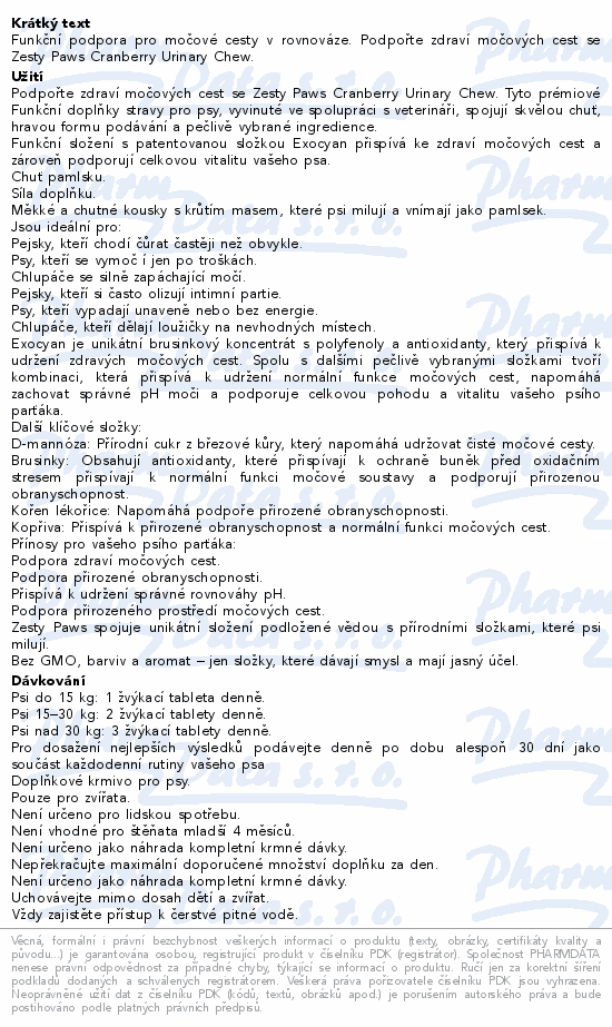 Funkční podpora pro močové cesty v rovnováze. Podpořte zdraví močových cest se Zesty Paws Cranberry Urinary Chew.